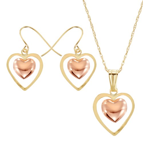 Cheap Price Now! 10k Two-Tone Double Heart Earrings and Pendant Set, 18" !!!