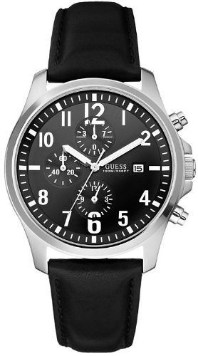 Buy Now : GUESS Watch, Men's Chronograph Black Leather Strap U11638G1
